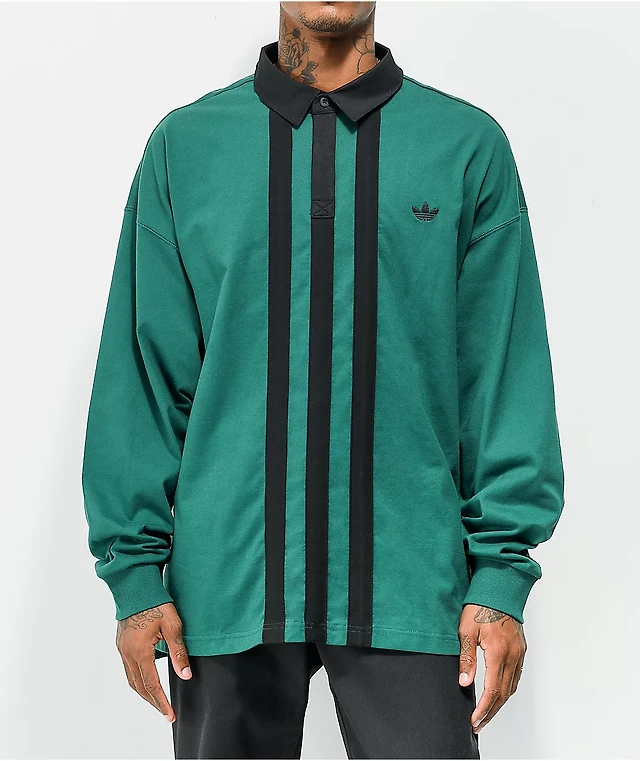 Men's adidas Originals 3-Stripes Rugby Long-Sleeve Polo Shirt