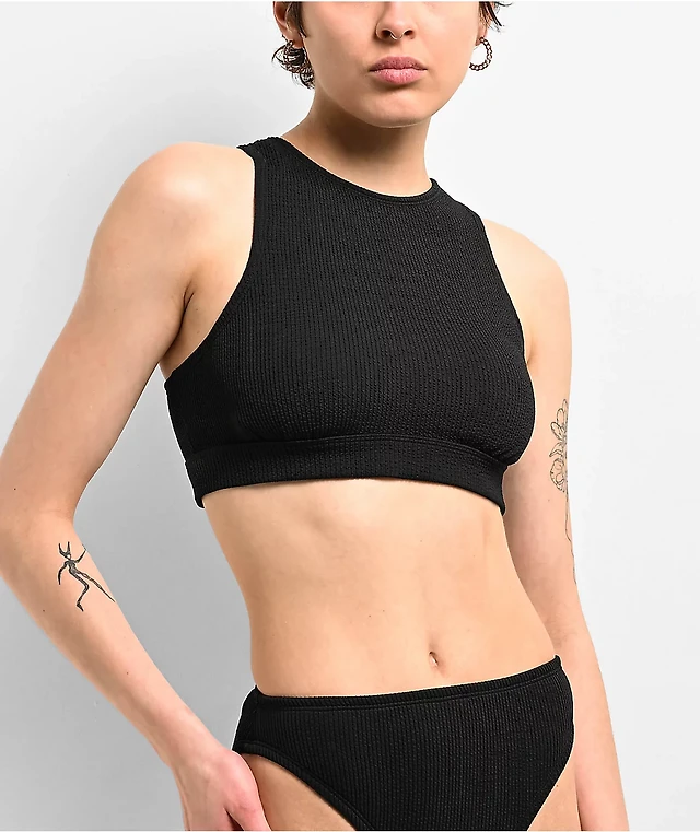 Pacsun Black Aster Ribbed Contrast High Cut Bikini Bottom