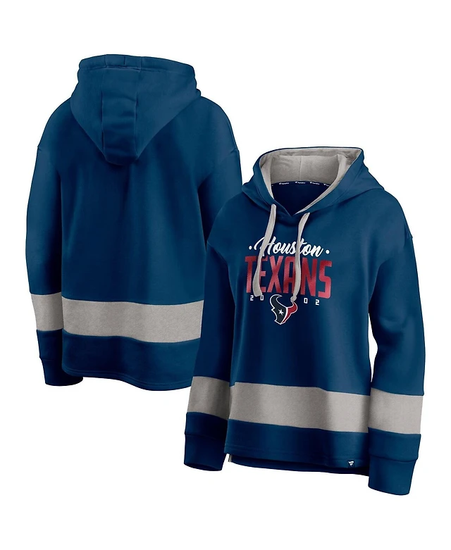 Fanatics Women's Navy/Gray Houston Texans Huddle Up Fundamental Fleece Color Block Pullover Hoodie