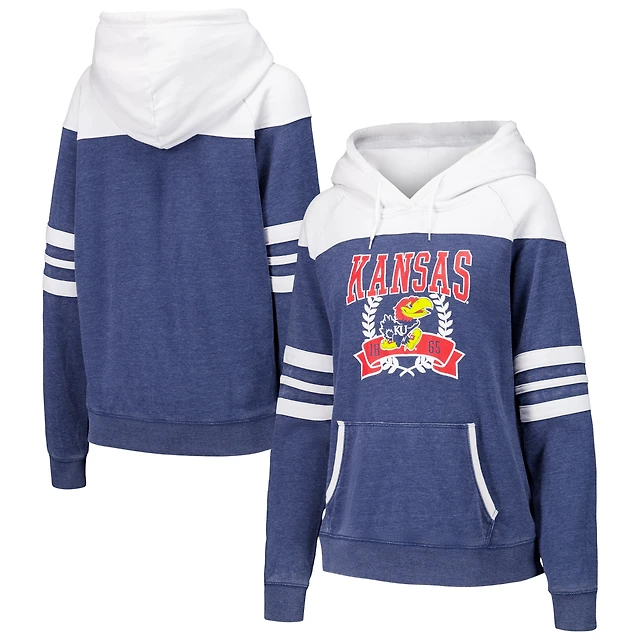 Women's Navy Kansas Jayhawks Blitz Striped Blocked Raglan Pullover Hoodie