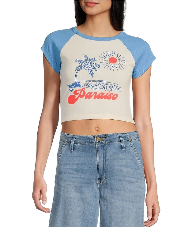 Roxy Paraiso Raglan Sleeve Color Block Crop Graphic Baby T-Shirt