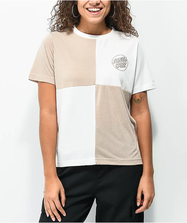 Women's WEAR by Erin Andrews Brown/White Cleveland Browns Plus Size Color Block Boxy T-Shirt