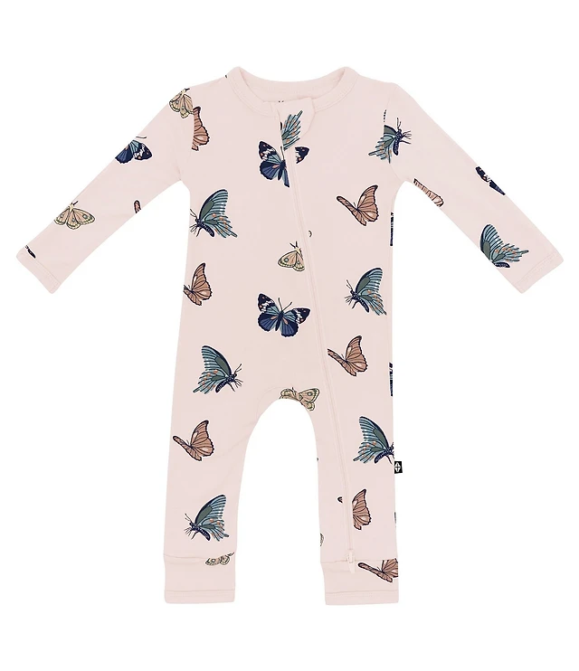 Kyte BABY Baby Girls Bamboo Butterfly Print Zip Front Footie