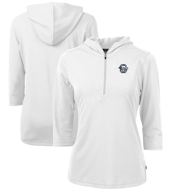 Women's Cutter & Buck Navy Los Angeles Angels Americana Logo DryTec Virtue Eco Pique Recycled Half-Zip Pullover Hoodie