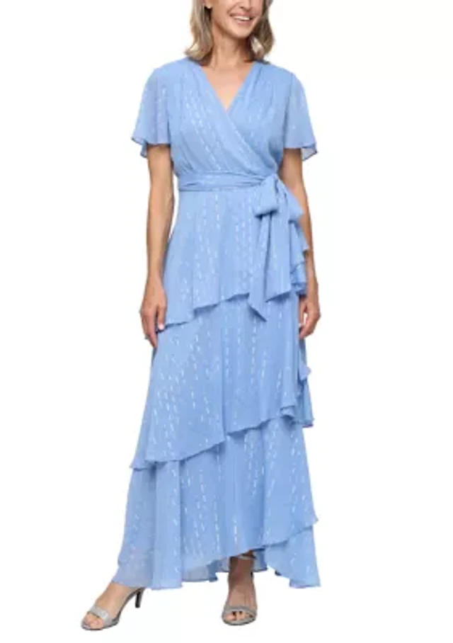 Hello Miz Maternity Smocked Empire Waist Midi Dress with Shoulder Ties