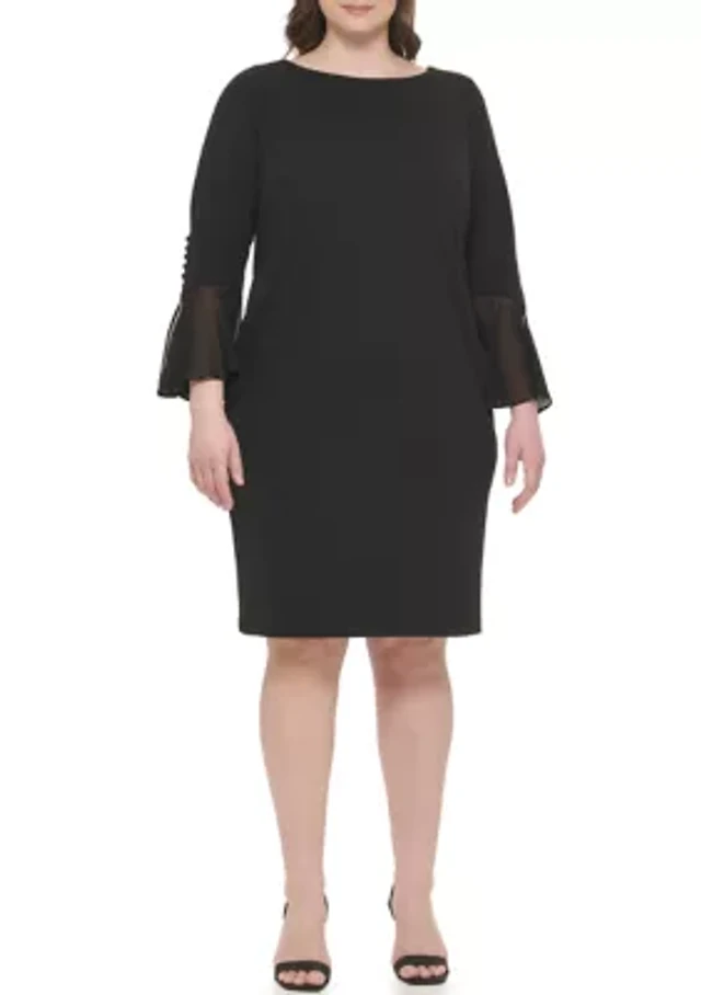 Plus Chiffon Bell Sleeve Solid Shift Dress