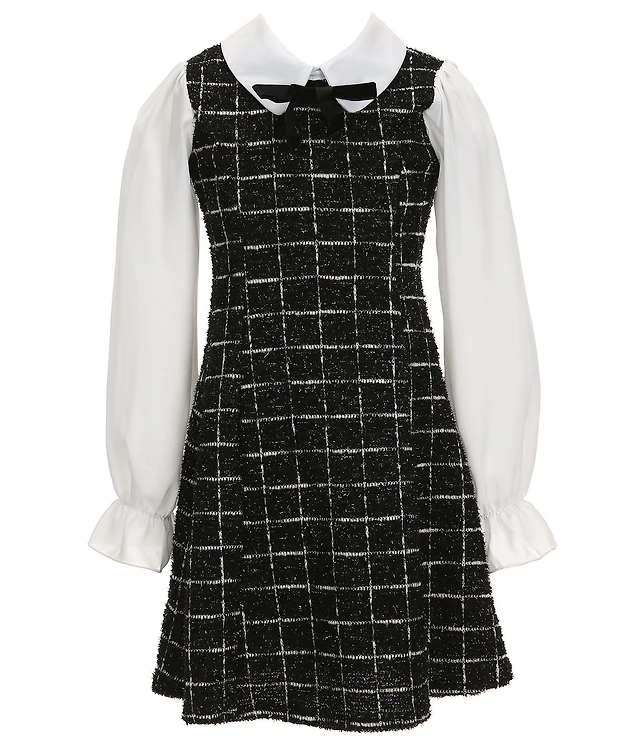 Allison & Kelly Big Girls Boucle/Solid Long Sleeve Shift Dress