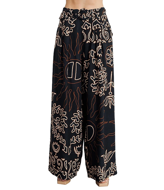 CIEBON Seleste Printed Woven High Waist Wide Leg Belted Coordinating Pants