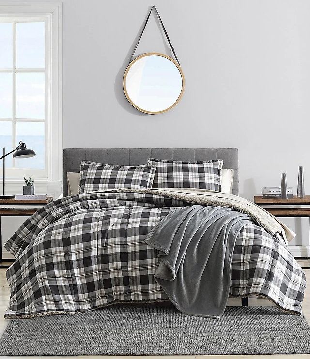 Vcny Home Plaid Brushed Flannel Sherpa Comforter Sets