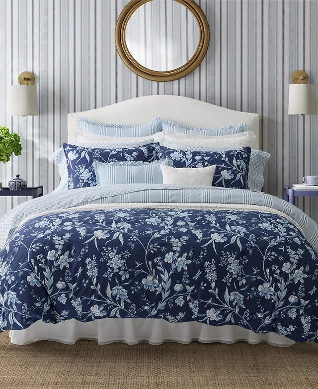 Laura Ashley Branch Toile Cotton Reversible 7 Piece Comforter Set, King