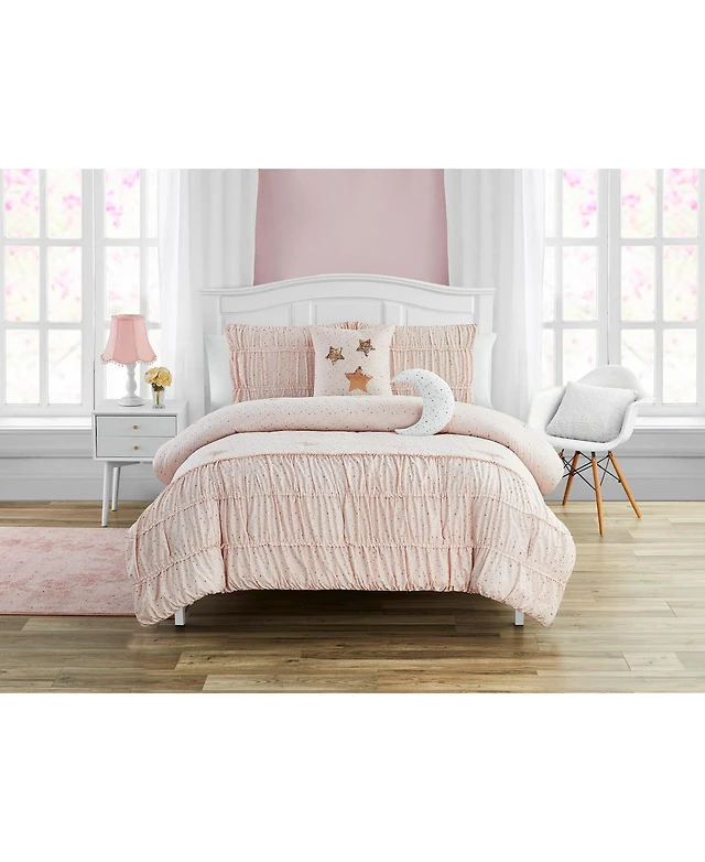 Celestial Princess Pink Smocked Texture Comforter Set with 2 Decorative Pillows