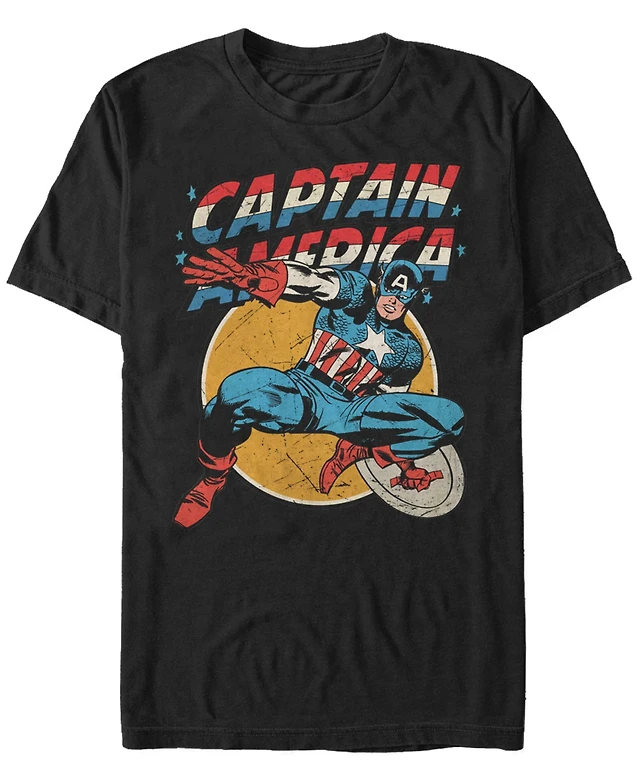Marvel Men's Captain Retro Checkered Comic, Short Sleeve T-shirt