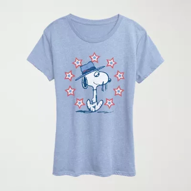 Spike Americana Womens Crew Neck Short Sleeve Classic Fit Peanuts Graphic T-Shirt