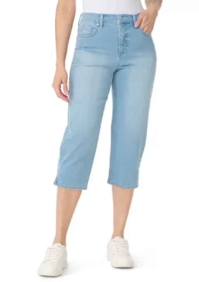 Women's High Rise Cropped Denim Pants with Scalloped Flare