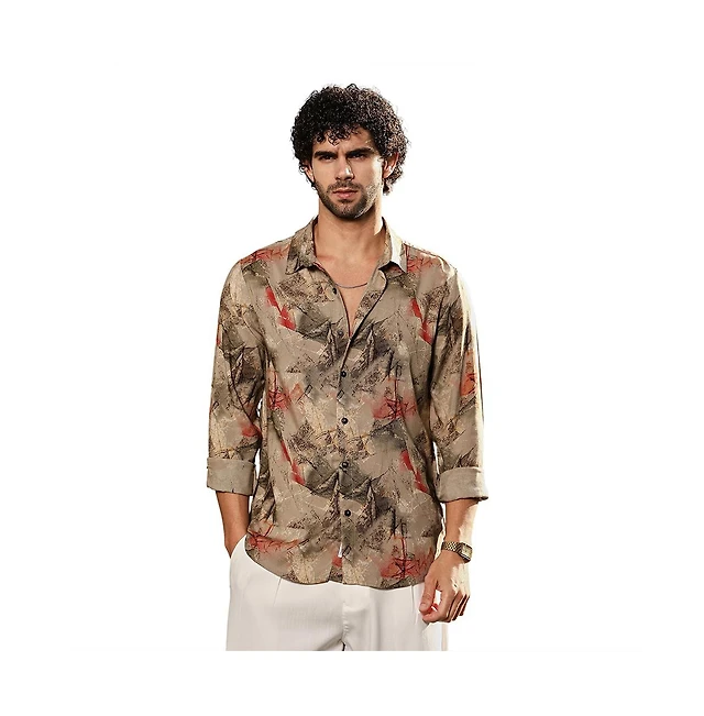 Campus Sutra Men's Camel Beige Pigme-Strokes Shirt
