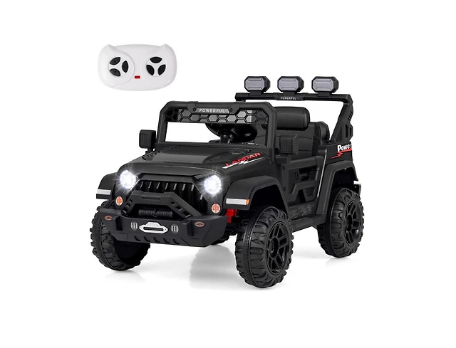 12V Kids Ride On Truck with Parent Remote Control, Electric Battery Powered Toy Car with Spring Suspension, Adjustable Speed, Led Lights and Horn, Bla