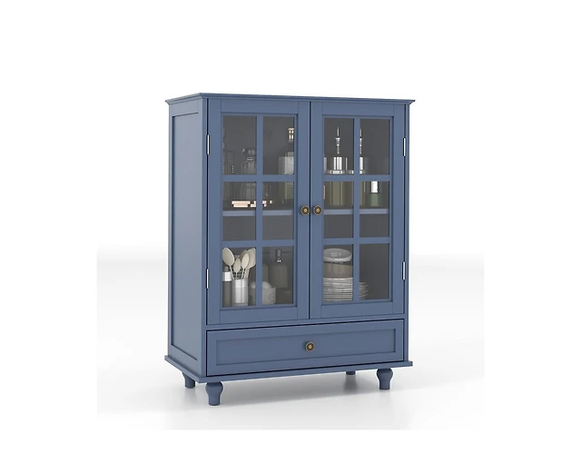 Streamdale Furniture White Mdf Display Storage Cabinet, Tall Kitchen Pantry Cabinets with Glass Doors and Adjustable Shelves, Freestanding Storage Cup