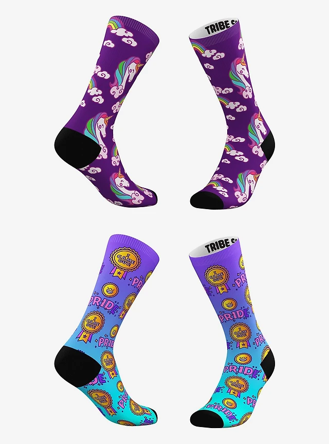 Purple Cloud Unicorn and I Came Out Pride Socks 2 Pairs