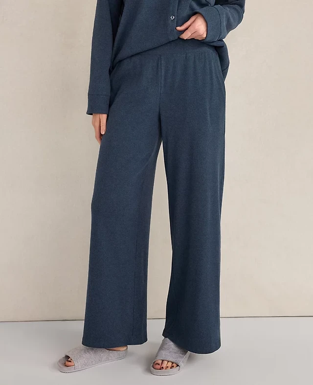 Ann Taylor Haven Well Within Organic Cotton Rib Knit Relaxed Wide Leg Pants Twilight Navy Women's