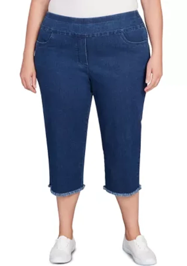Petite Classics Neutrals Denim Fringe Capri Pants