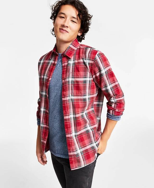 Sun + Stone Men's Burke Regular-Fit Plaid Button-Down Shirt, Created for Macy's
