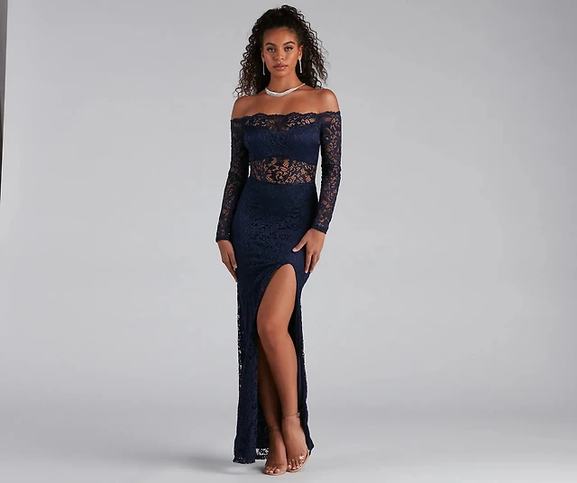Kimmie Off-The-Shoulder Slit Formal Dress