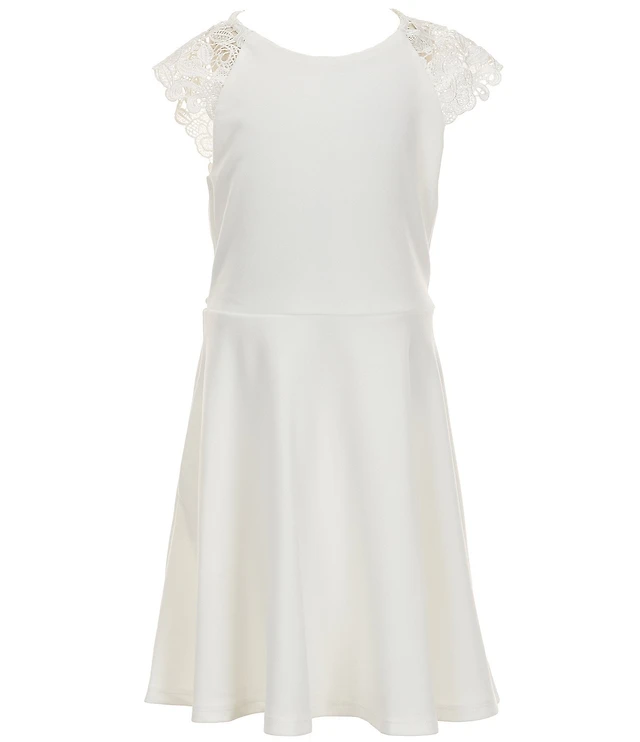 Xtraordinary Big Girls Scuba Crepe Ruffle Shoulder Knee Length Dress