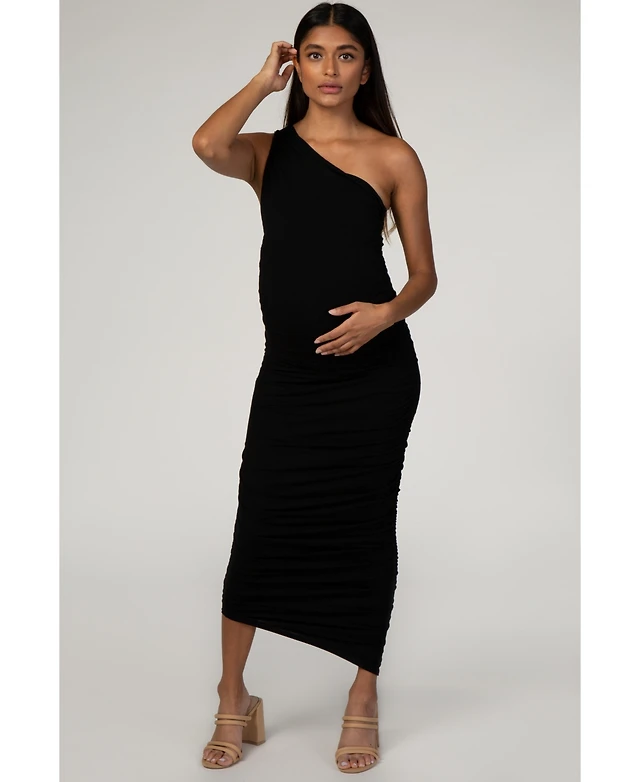 PinkBlush Black Ruched One Shoulder Maternity Dress