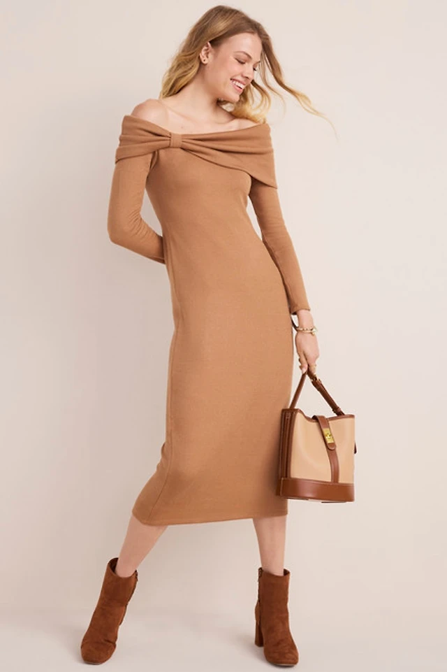 EDIKTED Eve Off Shoulder Knit Mini Dress
