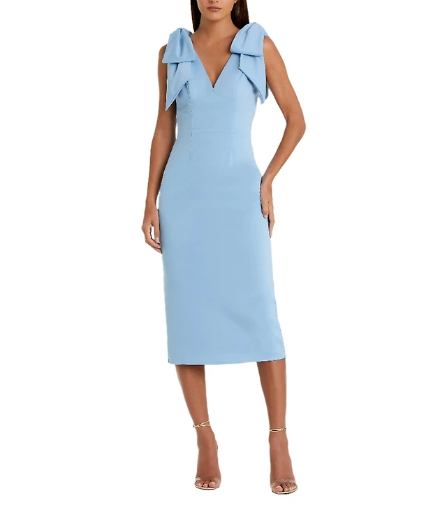 Aidan Mattox Stretch Jacquard One Shoulder Neck Sleeveless Bow Waist Column Dress