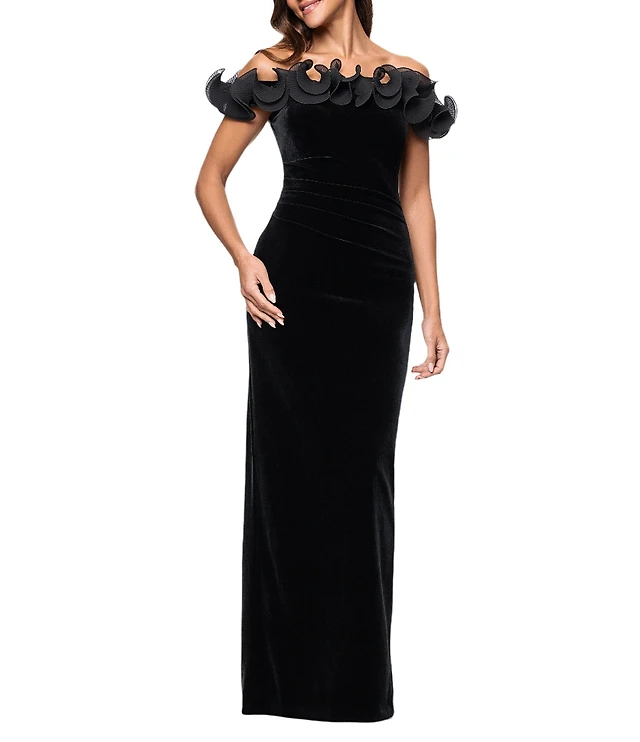 Eliza J Off-The-Shoulder Stretch Velvet Gown