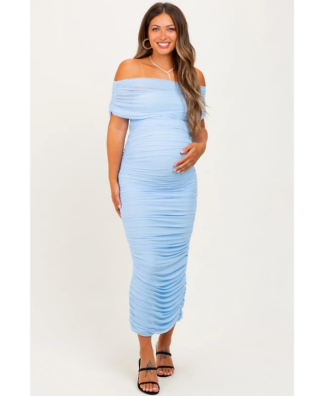 Pinkblush Maternity Light Pink Ruched Mesh Foldover Off Shoulder Maxi Dress