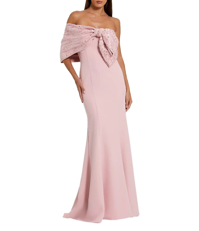 Mac Duggal Crepe Off-The-Shoulder 3D FLoral Mermaid Gown