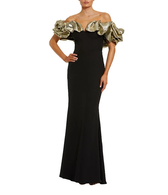 Mac Duggal Off-The-Shoulder Puff Short Sleeve Mermaid Gown