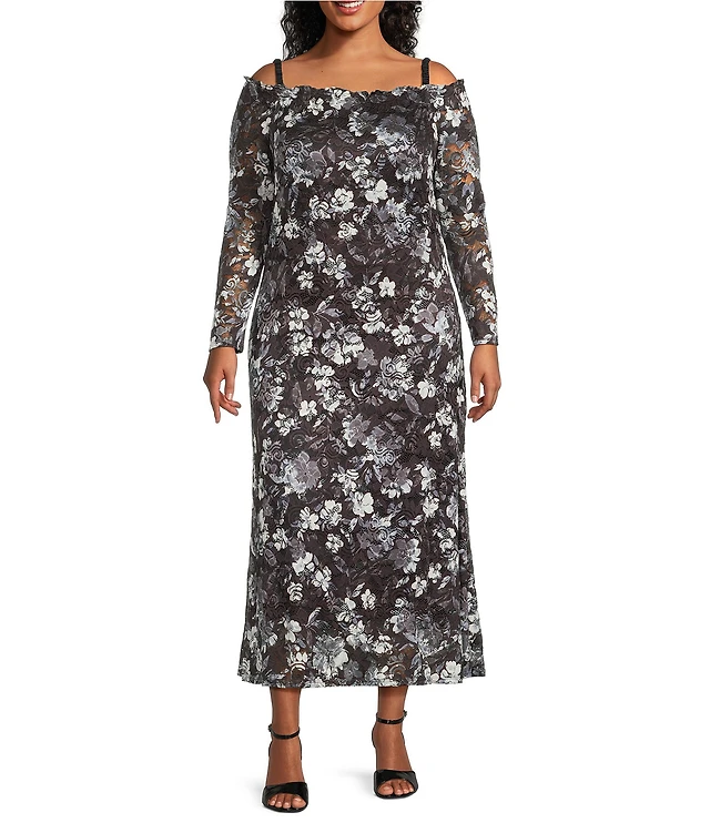 Xscape Plus Size Sweetheart Off-The-Shoulder Embroidered Lace Gown