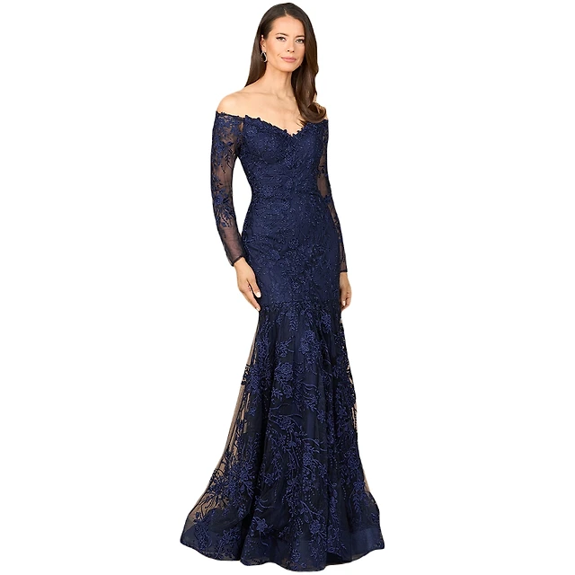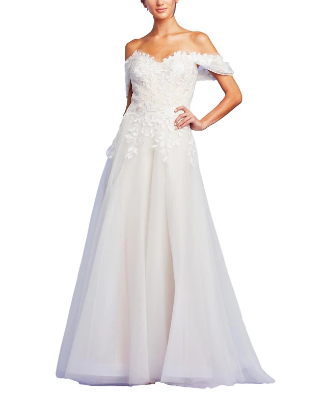 Tadashi Shoji One Shoulder Lace Floral Applique Bodice Tulle Gown