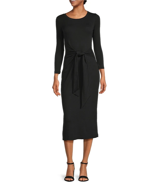 Hope & Henry Women's Sleeveless Ponte Skater Dress with Waist Sash