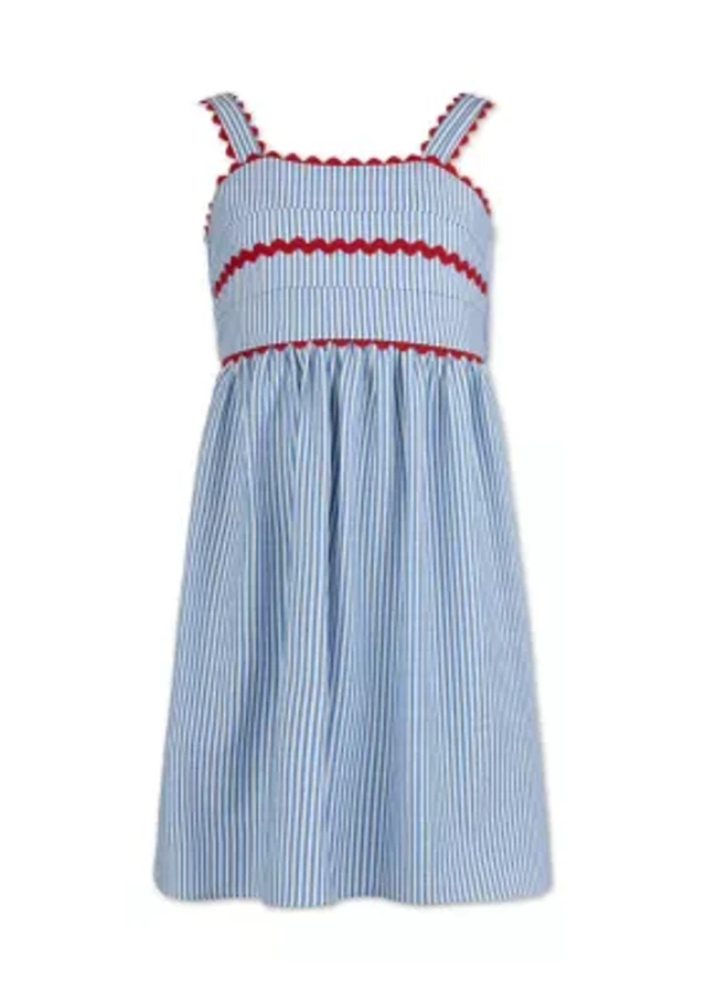 Girls 4-6x Long Sleeve Woven Dress with Printed Skirt