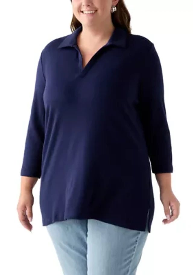 June + Vie Women's Plus Polo Shirt Sweater