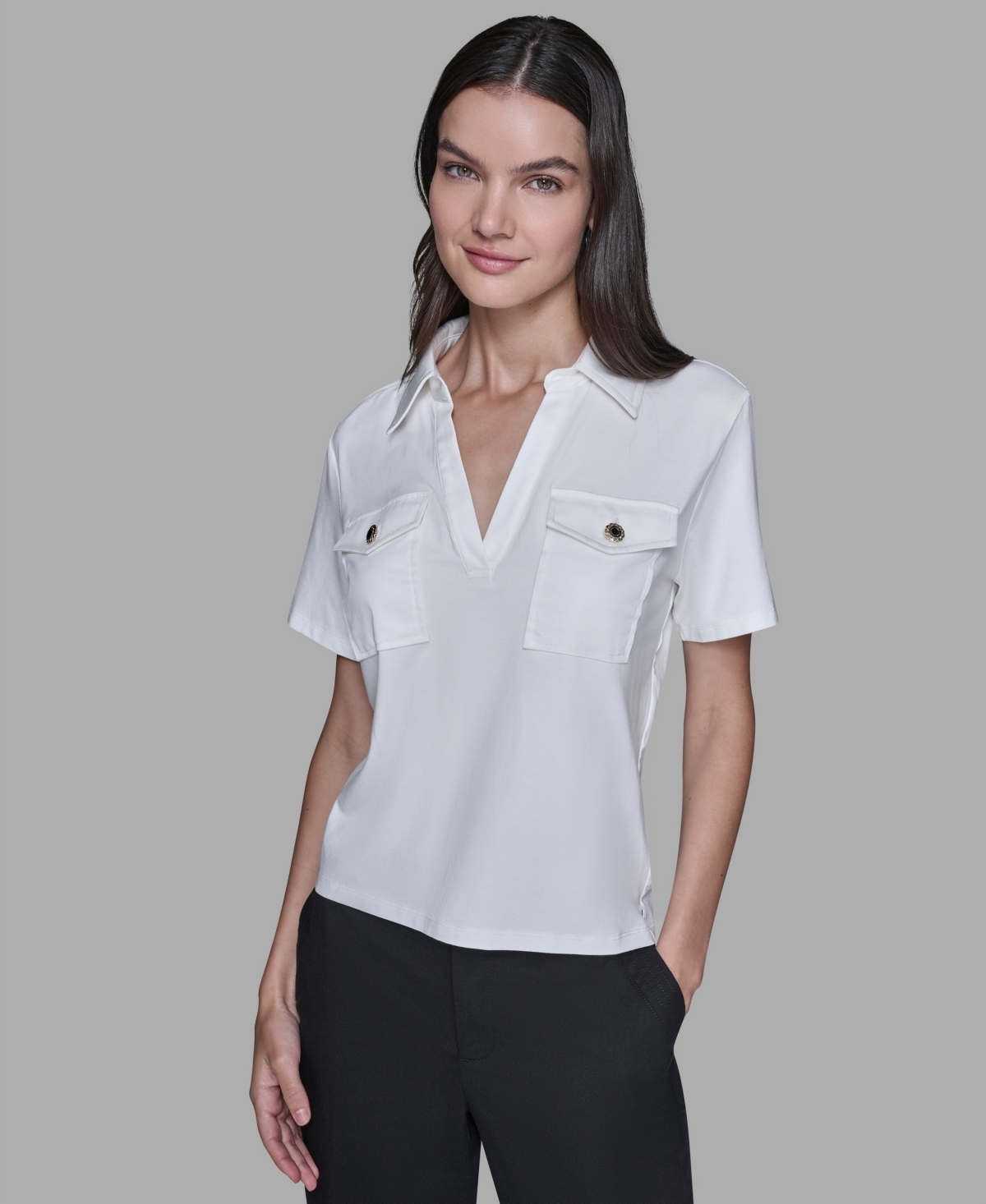 Karl Lagerfeld Paris Women's Short-Sleeve Collared Polo Top