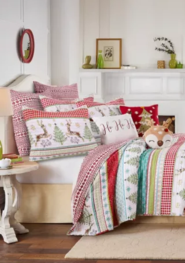 Linery & Co. Cotton Stitched Reversible Coastal 3 Piece Quilt and Sham Set