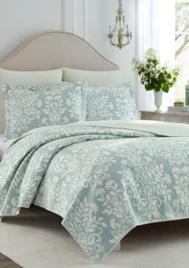 Laura Ashley Walled Garden Cotton Reversible -Piece Quilt Set