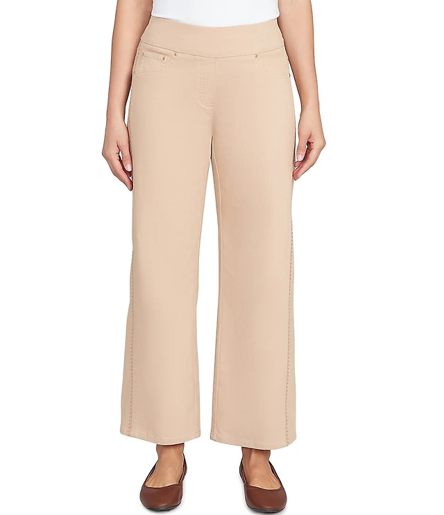 Women's High Rise Ankle Skimmer Pants with Paisley Embroidery