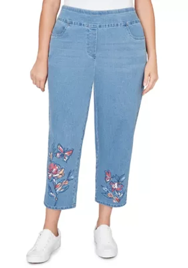 Plus Harvest Moon Paisley Floral Embroidered Ankle Pants