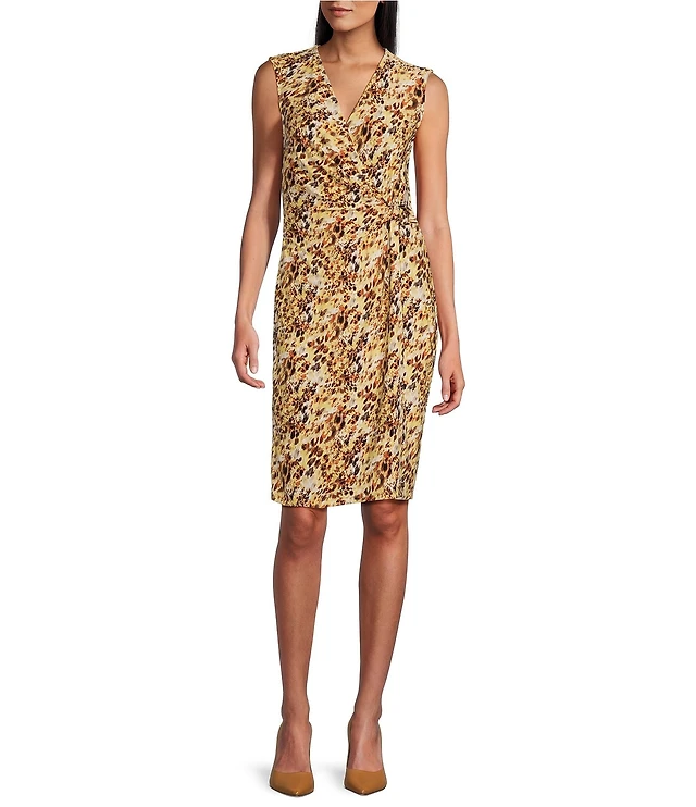 R & M Richards Women's Chiffon Printed Sleeveless Wrap Dress