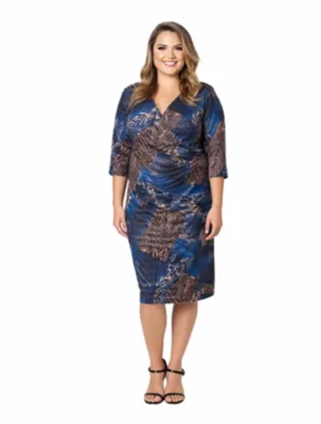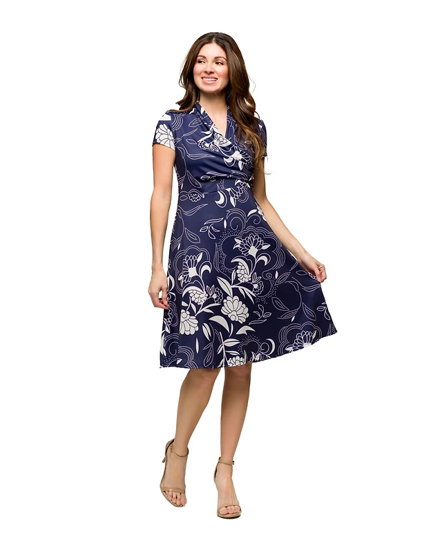 24seven Comfort Apparel Plus Size Knee Length Short Sleeve Faux Wrap Dress