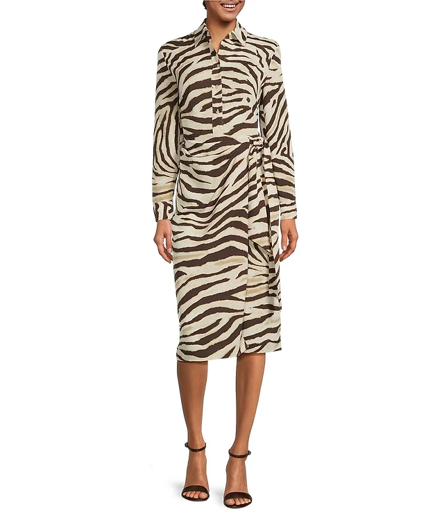 Preston & York Sydney Antelope Print Knit V-Neck Short Sleeve Tie Waist Faux Wrap Midi Dress