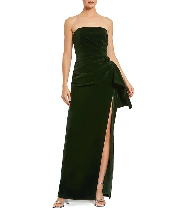 Mac Duggal Women's Ieena Sequined Long Sleeve Faux Wrap Ruched Gown