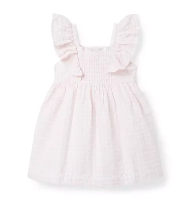 Baby Girls Short Sleeve Plaid Smocked Dress and Bloomer Set