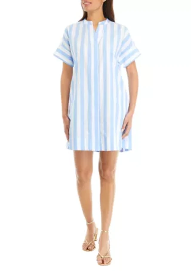 Chelsea & Violet Lila Striped Cotton Long Sleeve Split V-Neck Belted Button Down Dress